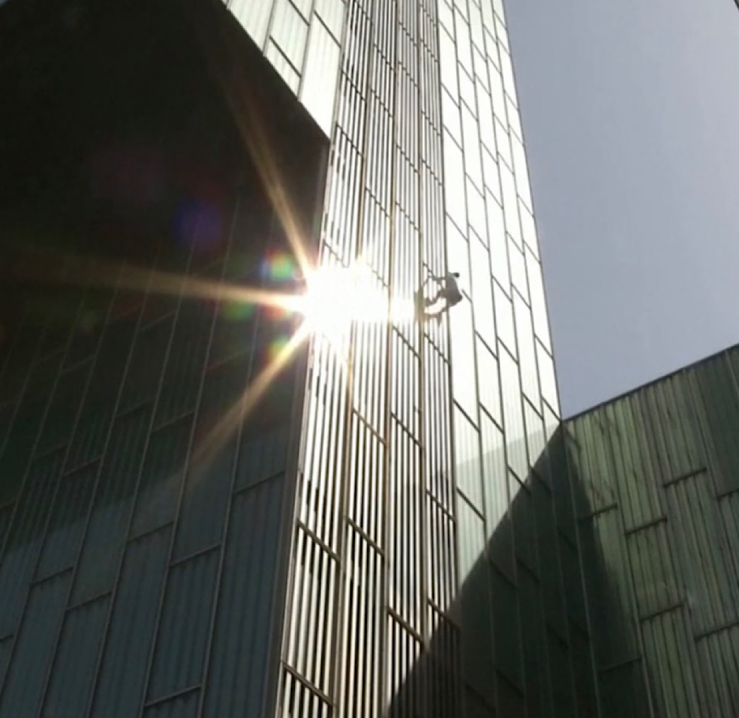 I would love to see the force diagrams as to how this fellow climbs vertically with no ropes or climbing aids. He makes Spider-Man almost redundant!