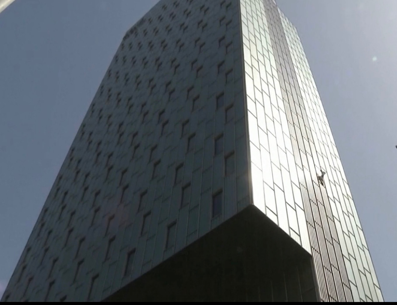 I was wondering about his technique. When he climbed up the length of one window unit, how come his shoes don’t slide on the aluminum?