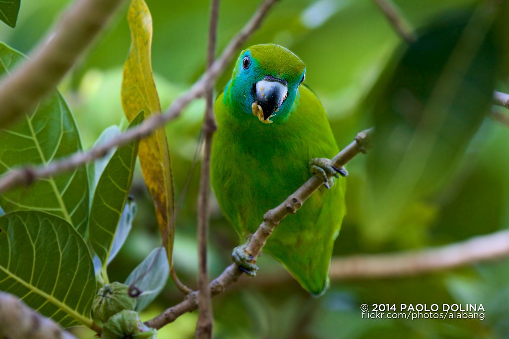 The Guaiabero (Bolbopsittacus lunulatus) is a species of parrot in the Psittaculidae family, belonging to the monotypic genus Bolbopsittacus and closely related to the lovebirds (Agapornis) and hanging parrots (Loriculus). It is endemic to the Philippines. Its common name is derived from its reputation for eating guavas.