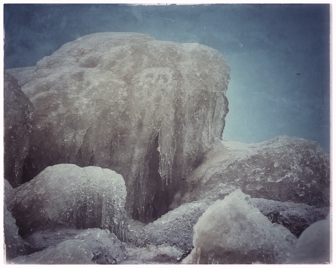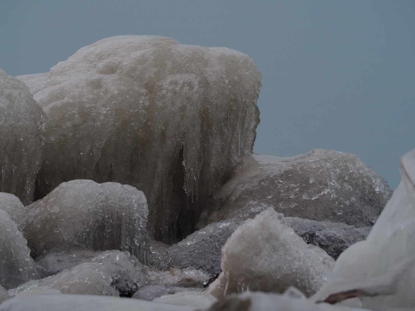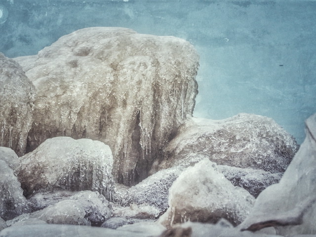 I got that web work done this week, and needed to take a drive together out of the apartment. I had the idea of using Olympus Live Composite with a lighthouse, and so we drove about an hour or so to the lake. Unfortunately there was no fog or mist, and so I didn’t end up with streams of light spreading out from the rotating light at the top. And so instead I did some light writing, captured car light steaks, and found some objects covered in thick ice. The ride home, proved to be brutal as a winter storm was settling in.
