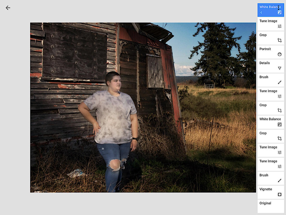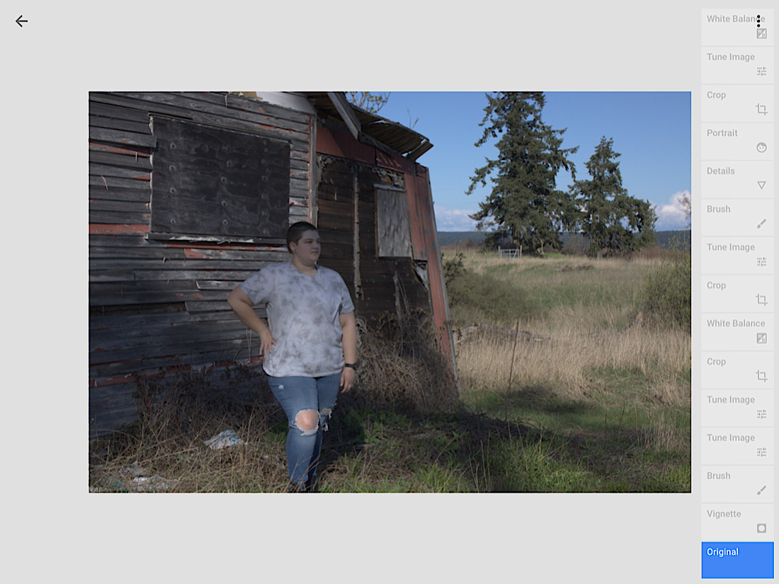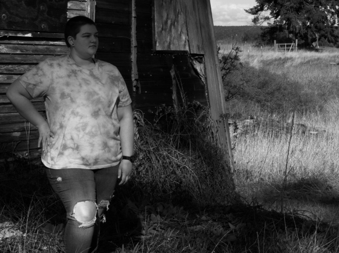 Just get her to stand in front of the shed or lean against it and talk to her like she’s a relative. Don’t tell her to pose. Tell her a joke, look into the lens, fold her arms, hold a shovel, anything she would normally do. Snap away while she’s moving about or tell her to stop and snap.